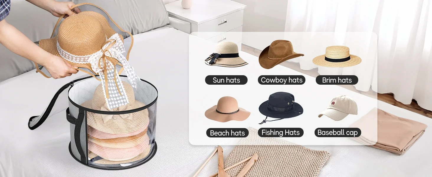 Hats Boxes for Women Storage Travel Large Round Hat Carrier Case Organizer Men Cowboys Caps Clothes Closet Storage Foldable