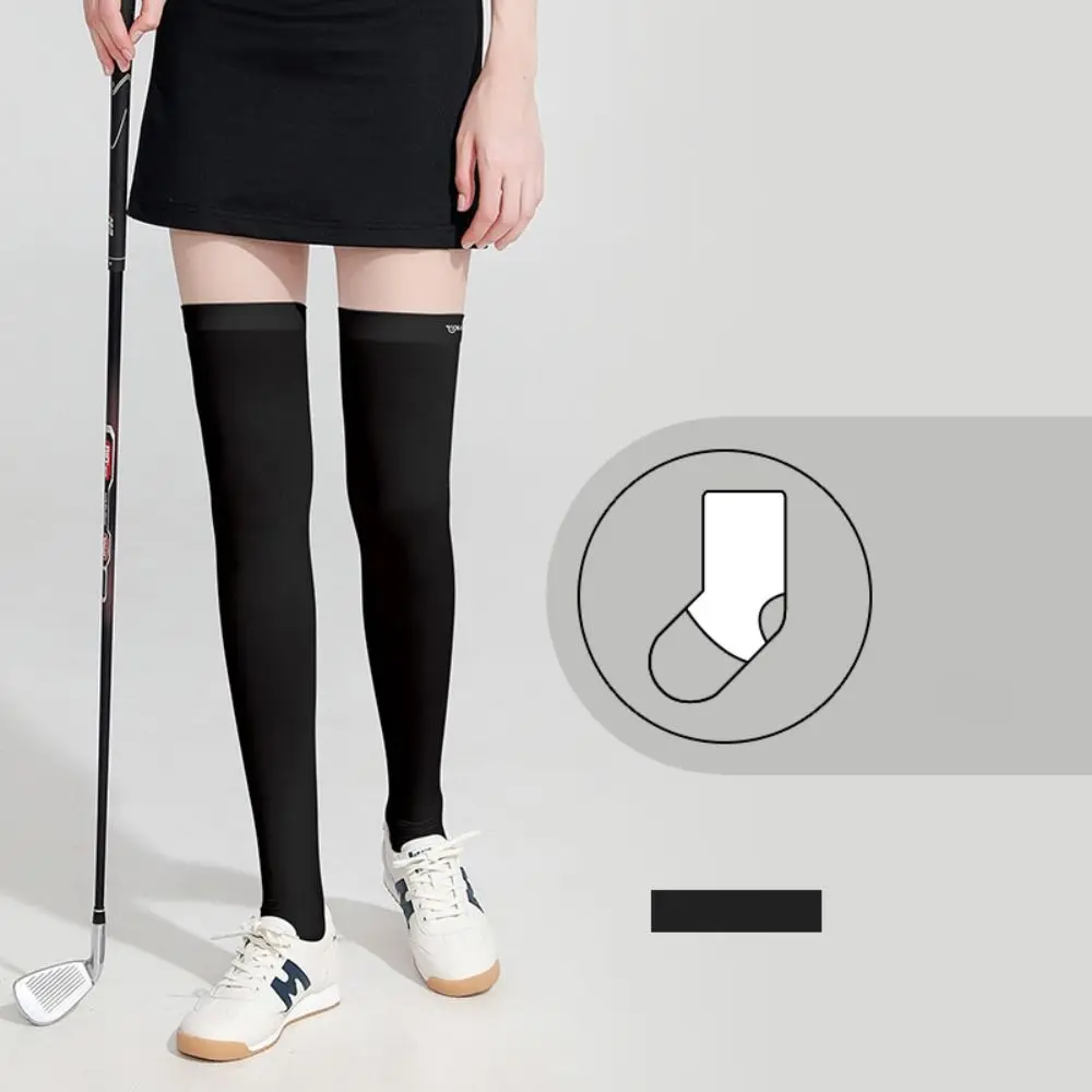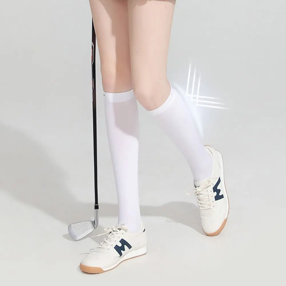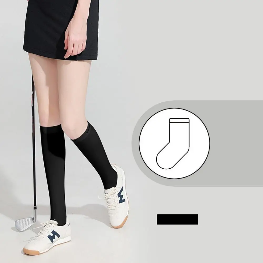 Ice Silk Sunscreen High Socks Black White Tennis Golf Sports Pressure Socks Elastic Breathable Sunproof Leg Protection Socks