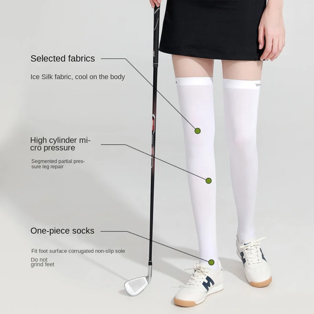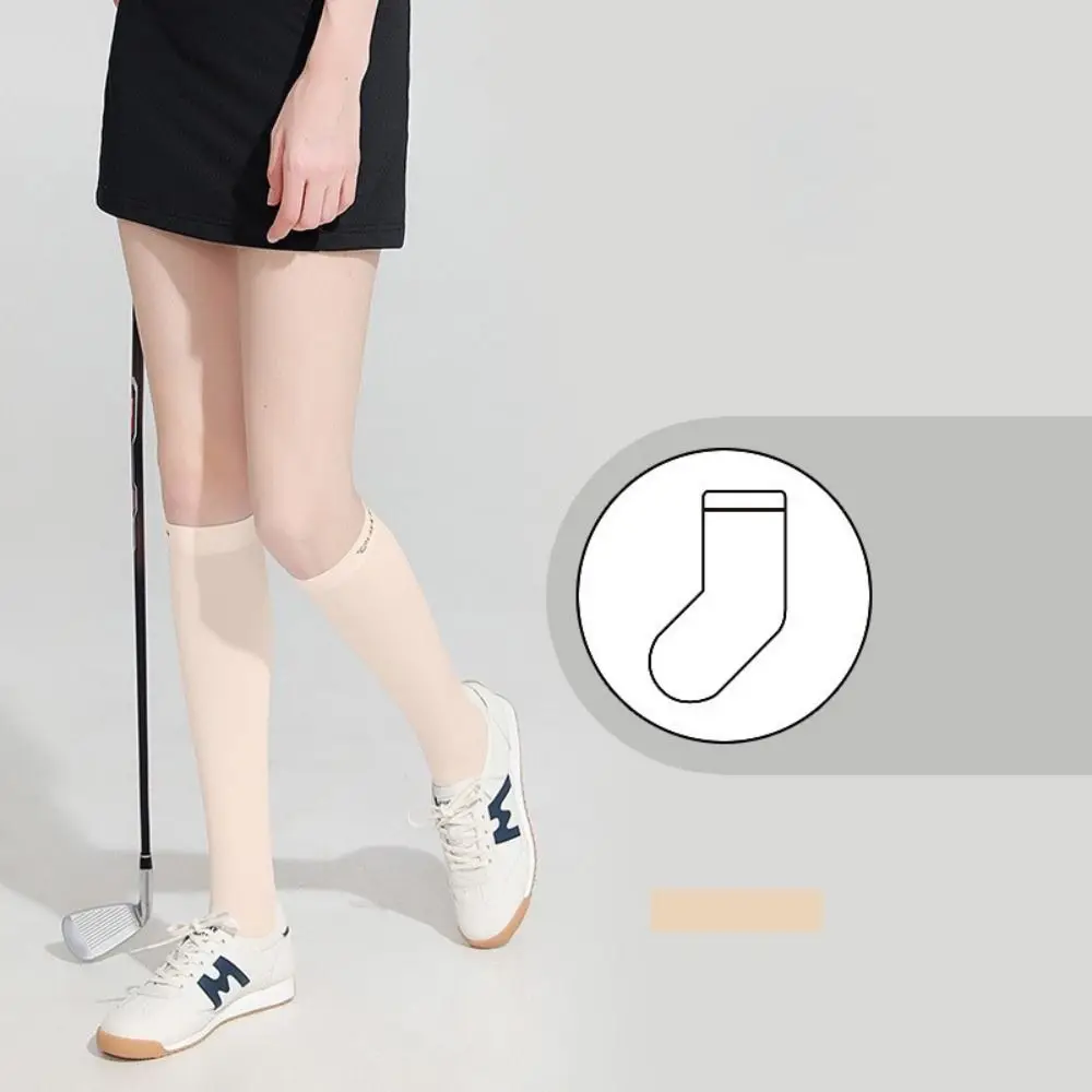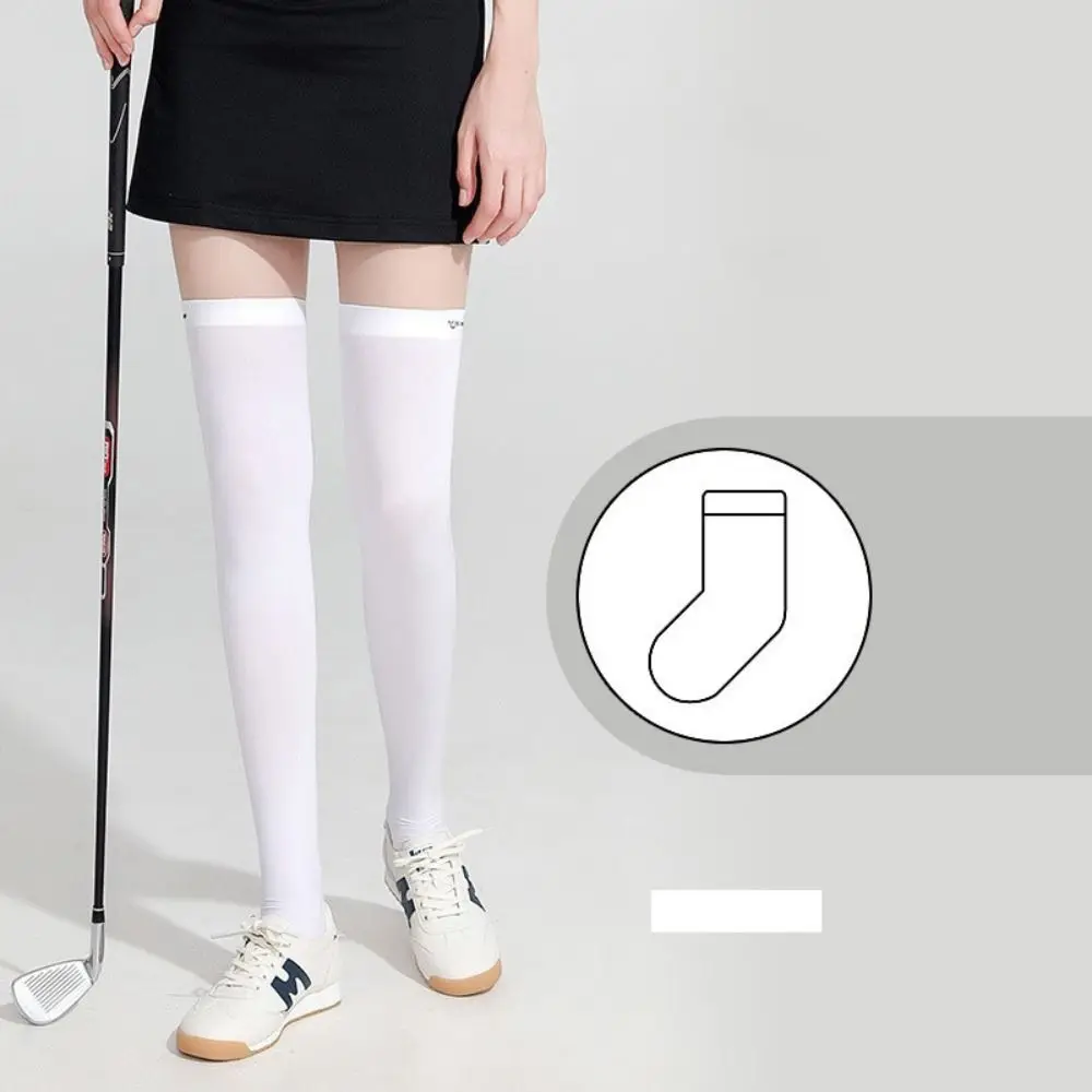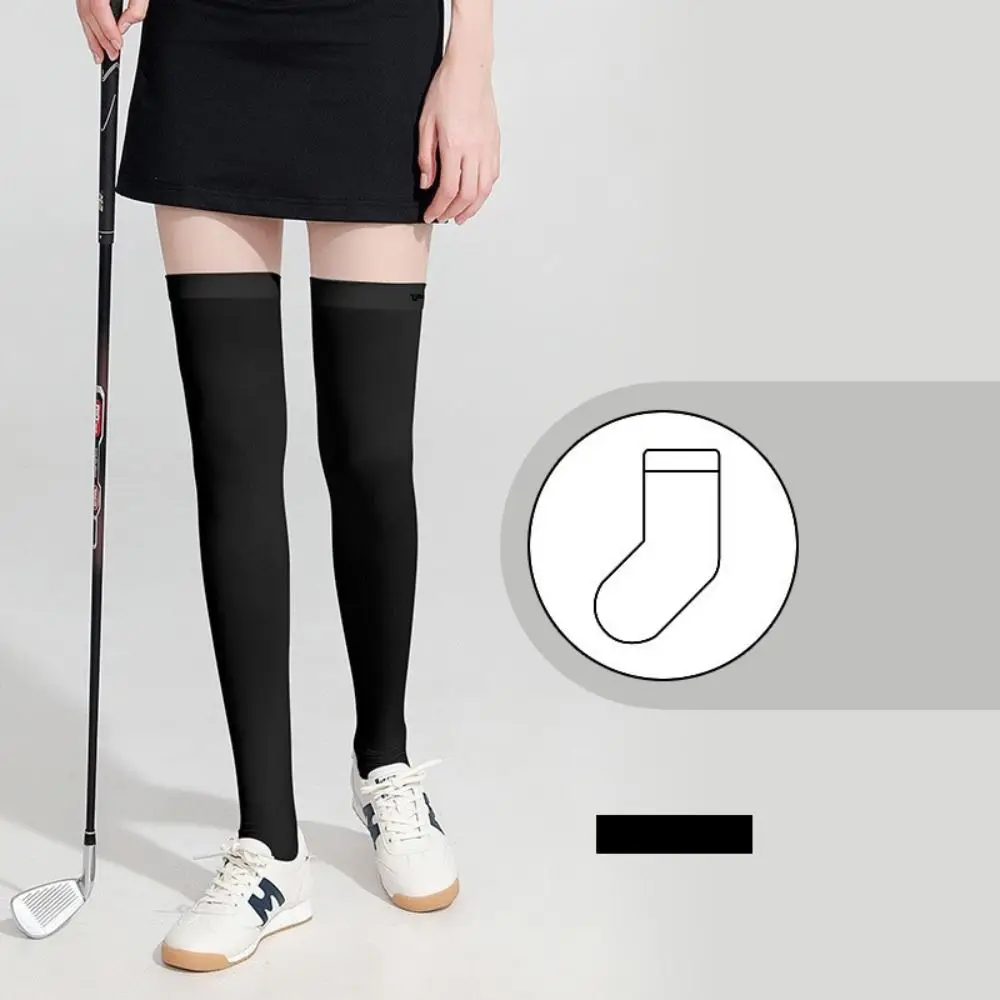 Ice Silk Sunscreen High Socks Black White Tennis Golf Sports Pressure Socks Elastic Breathable Sunproof Leg Protection Socks