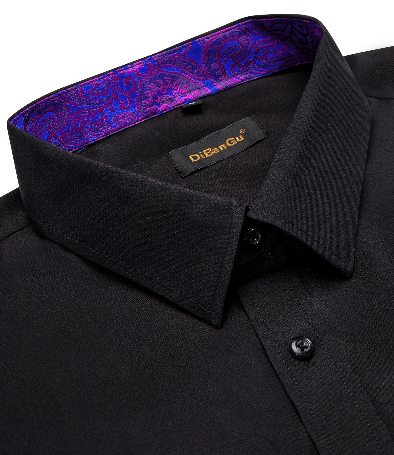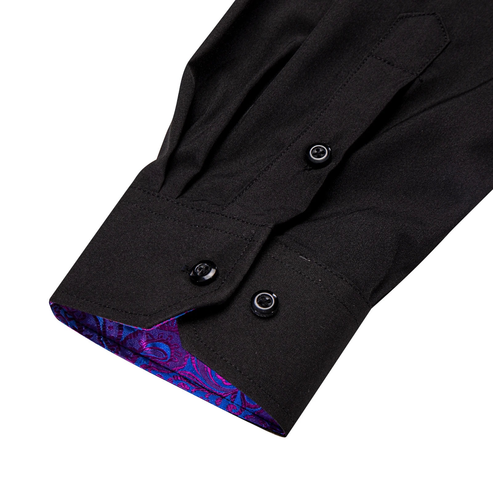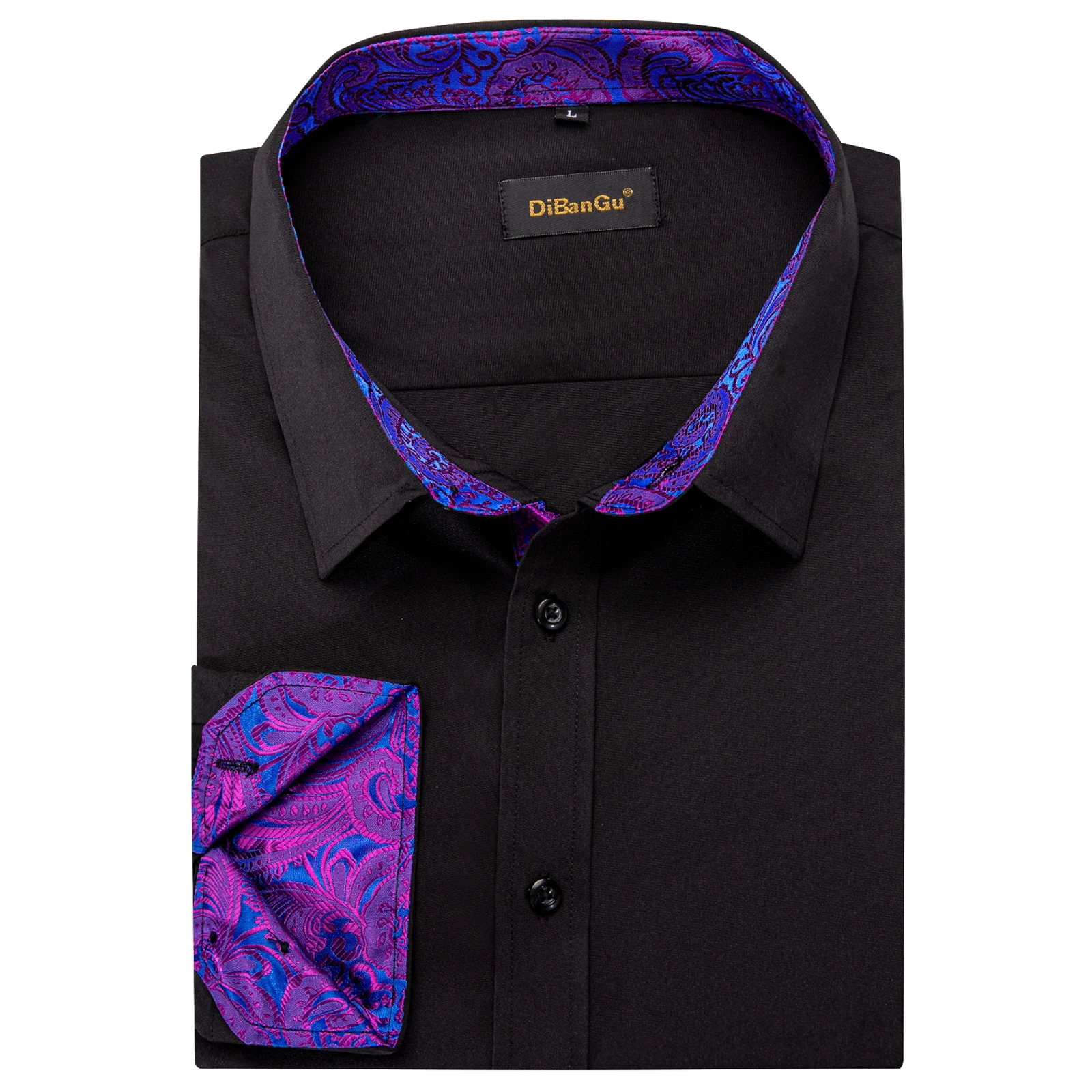 Men Shirts Long Sleeve Black Solid with Purple Contrast Color Collar and Cuff Fashion Casual Shirts Blouse for Wedding Praty