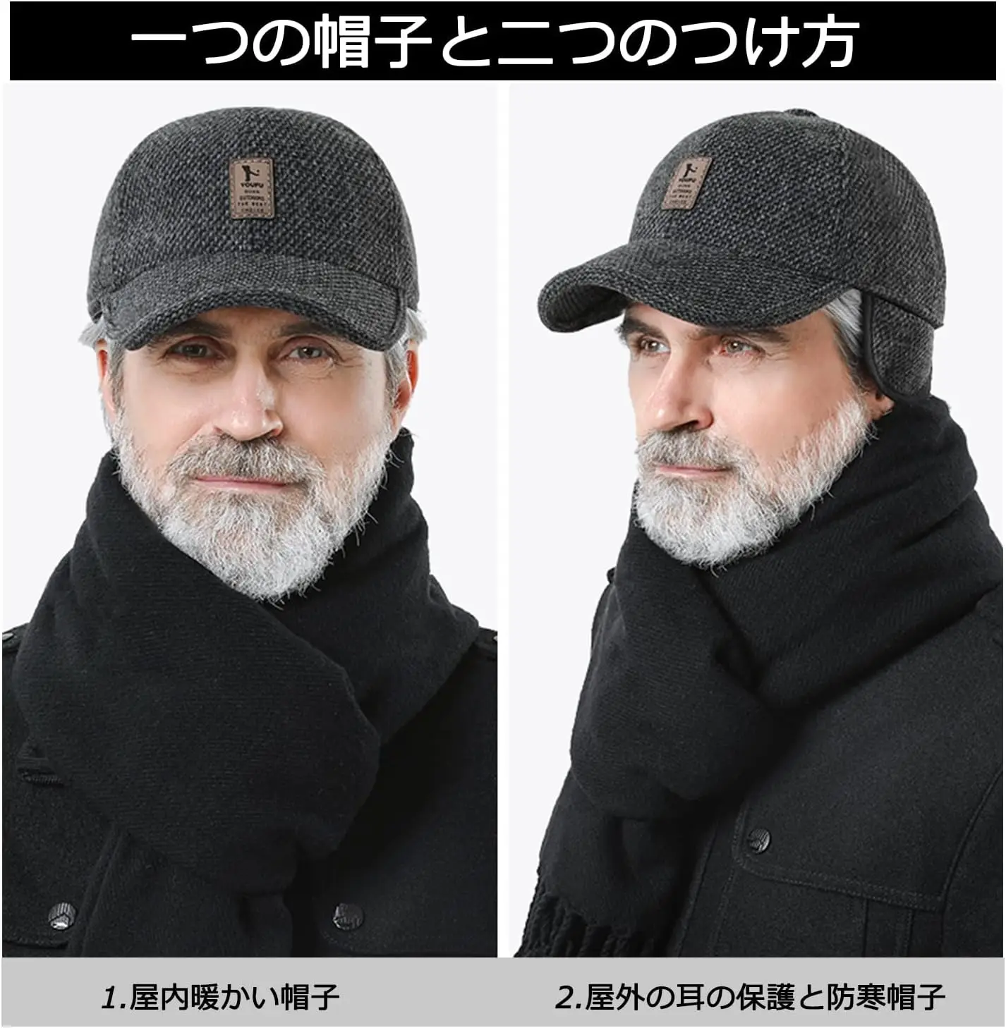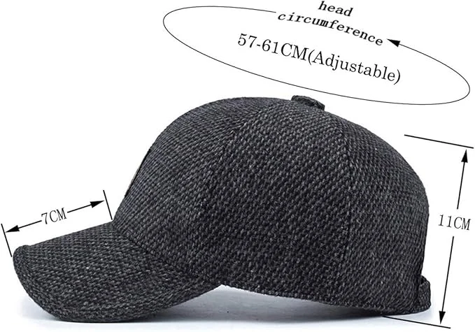 Men's Hat with Earmuffs, Baseball Cap, Warm, Cold Protection, Windproof, Size Adjustable, Cool, Casual, Work Camp, Climbing, Out
