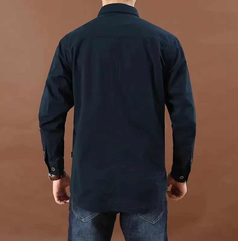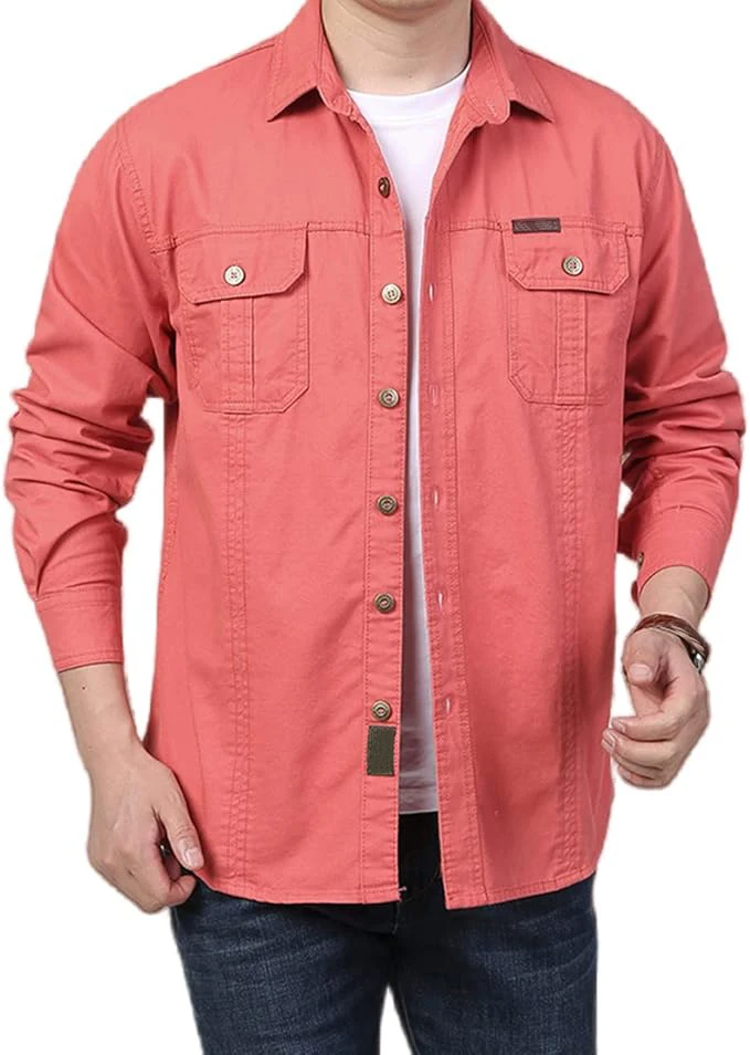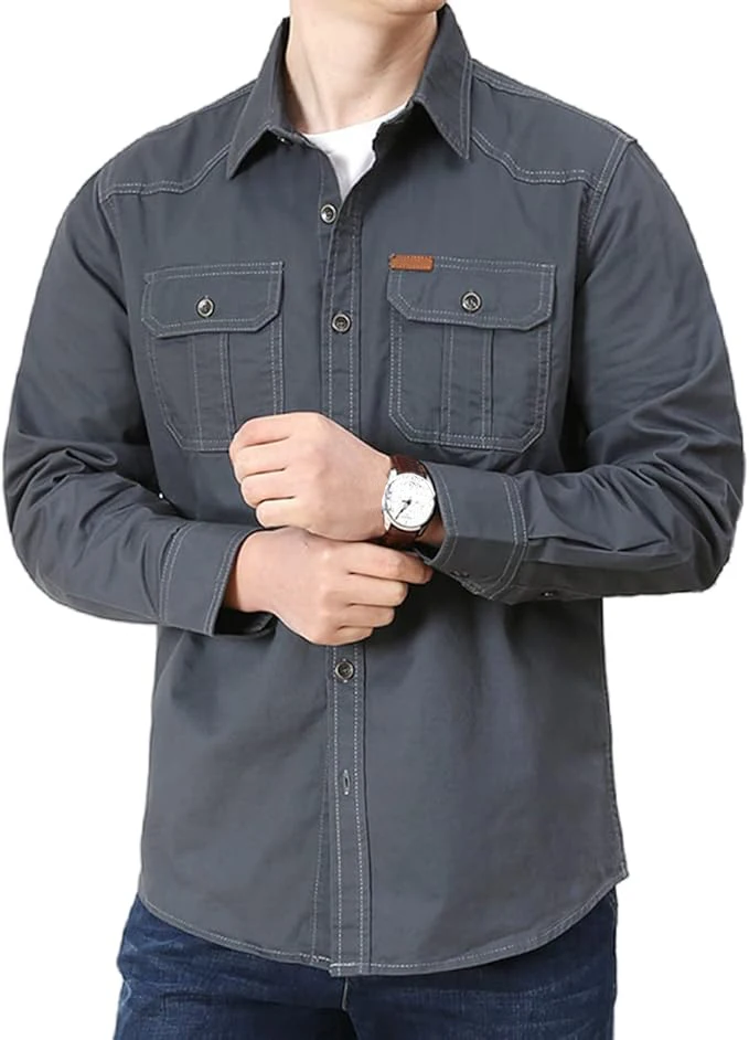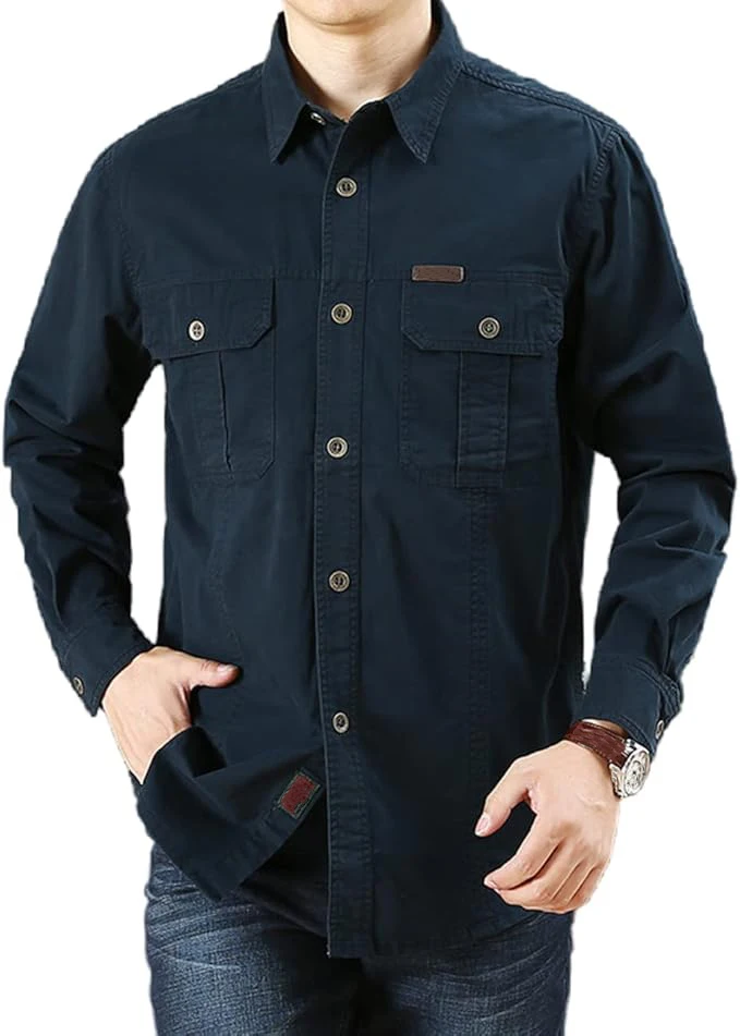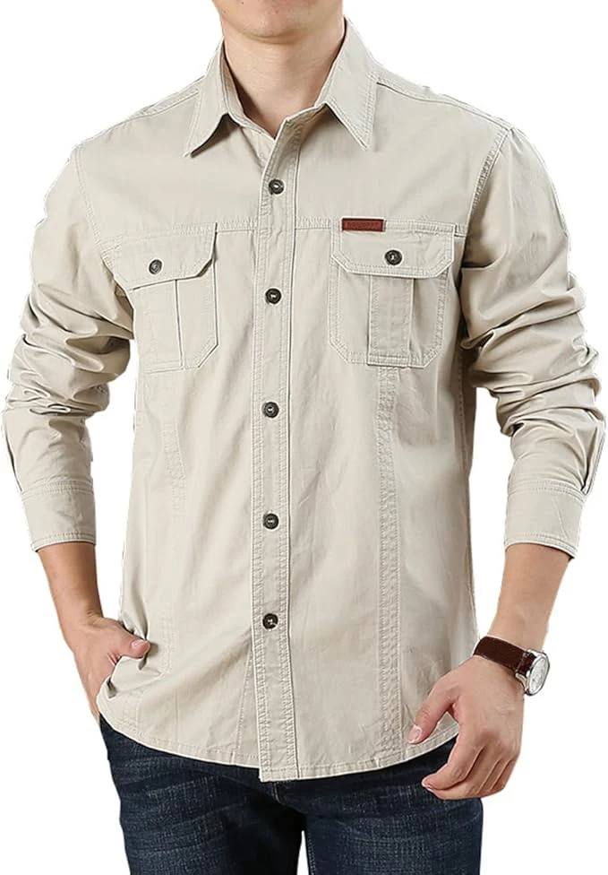 Men's Long Sleeve Cargo Shirt Casual Cotton Shirts Spring Autumn Button Down Pockets Sports Military Hiking Camping Shirt