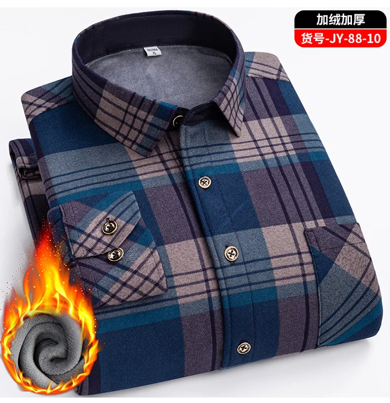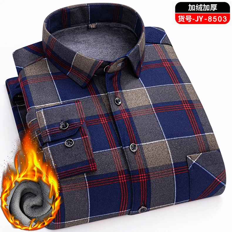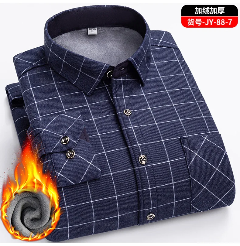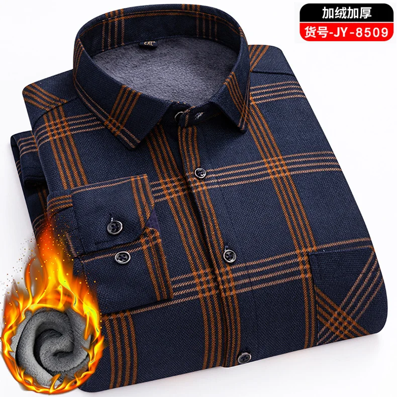 Men's long-sleeved shirt with double-sided fleece thickened warmth, 7XL, 8XL, winter casual and trendy, versatile for the street