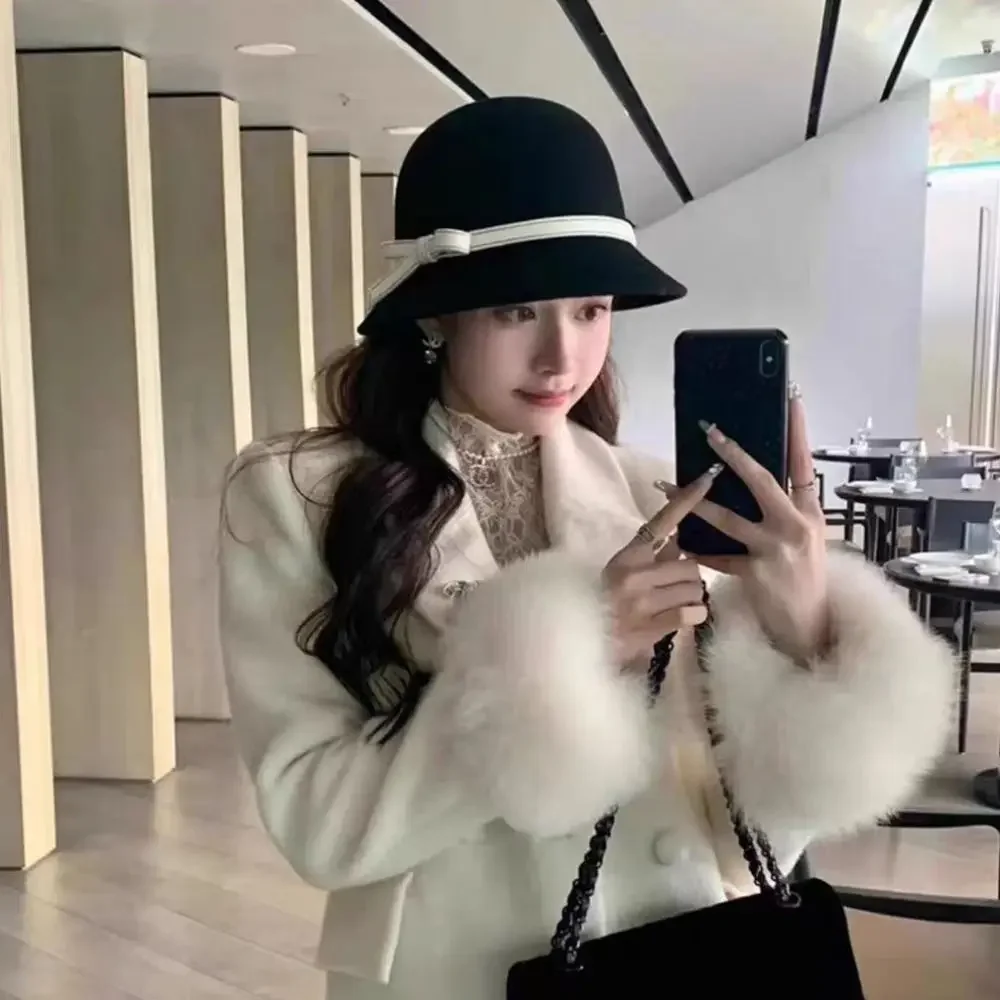 Retro Hepburnesque Felt Formal Hat Wealthy Heiress Style British Style Bowknot Bucket Hat Panama Cap Autumn