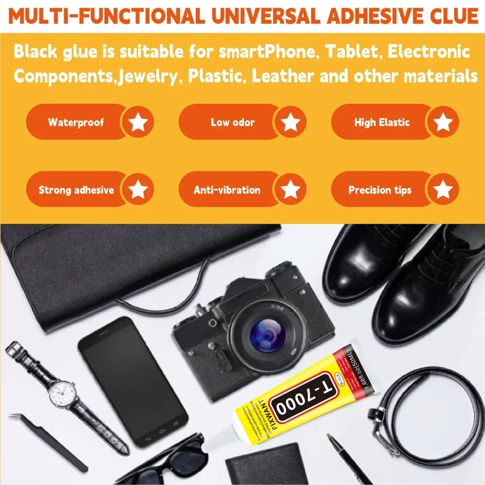 T-7000 Contact adhesive can be used on many materials but we recommend it as the staple choice for cellphone repair, tablet repair when you need adhesive with black color, its solid content, curing time and viscosity make it a great strong adhesive.